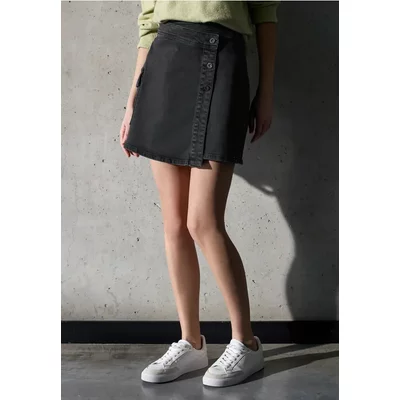 Street One Studio Dames Denim rok in wikkel-look in Zwart