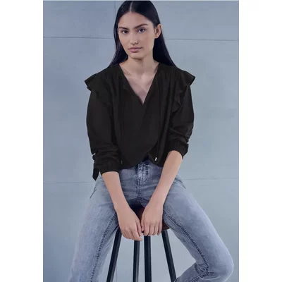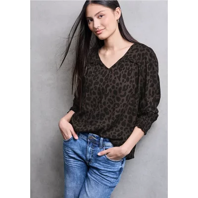 Street One Studio Dames Blouse met V-hals en ruches in Bruin