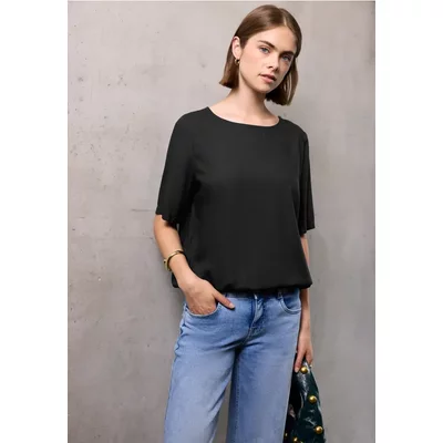 Street One Studio Dames Blouseshirt met elastische zoom in Zwart