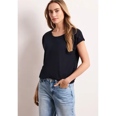 Street One Dames Dolman gestructureerde blouse in Blauw