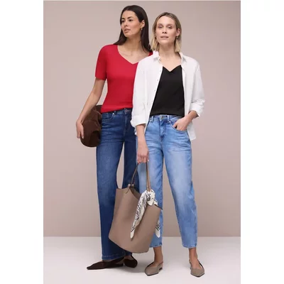 Street One Dames Uitgerolde Wide Legs jeans in Blauw
