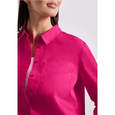 Street One Dames Blouse met lange mouwen en overhemdkraag in keperstof in Pink