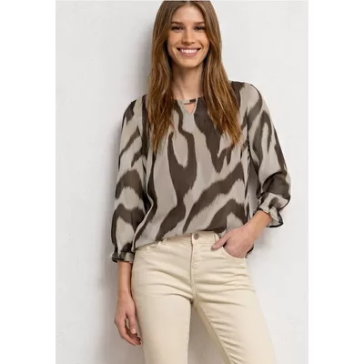 Street One Dames Shirt met glitterstrepen in Bruin
