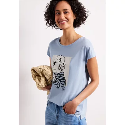 Street One Dames Gemêleerde tuniek met gespleten hals in Blauw
