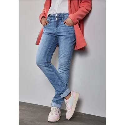 Street One Dames Jeans met verwoeste look in Blauw