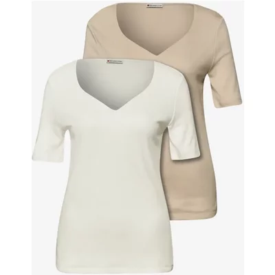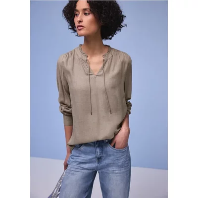 Street One Dames Leo blouse met gespleten hals in Beige