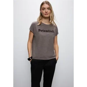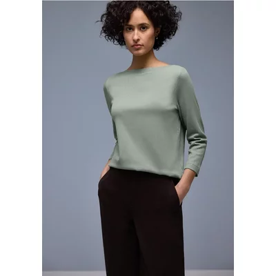 Street One Dames Shirt van jersey met gespleten hals in Bruin