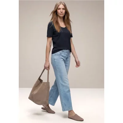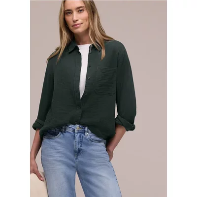 Street One Dames High Waist broek met wijde pijpen in casual pasvorm in Groen