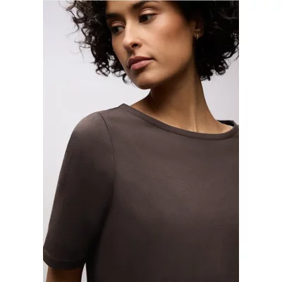 Street One Dames Basic shirt met geribbelde textuur in Bruin