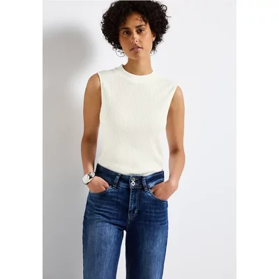Street One Dames Gestructureerde top met col in Wit