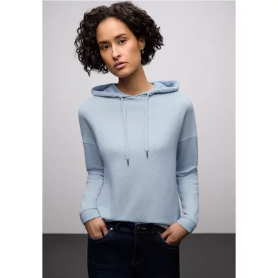 Street One Dames Shirt met gemêleerde capuchon in Blauw