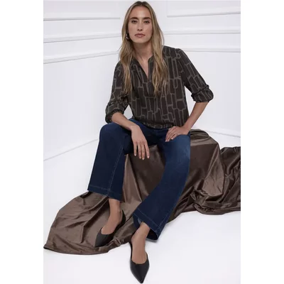 Street One Dames Gedessineerde overhemdblouse in Zwart