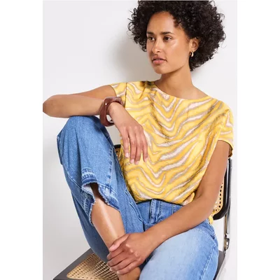Street One Dames Gedessineerde jersey top in Beige|Multicolour|Blauw