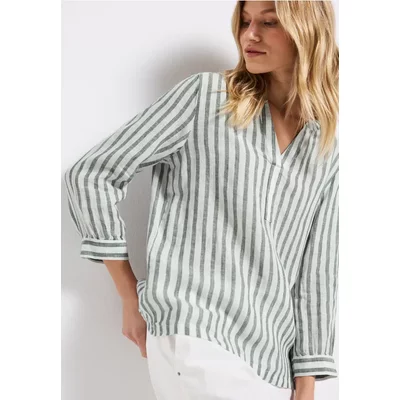 Street One Dames Gestreepte linnen blouse in Groen