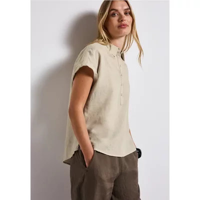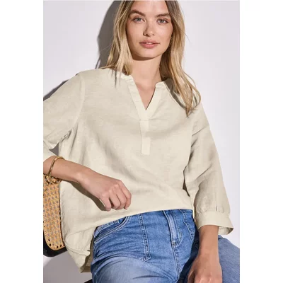 Street One Dames Linnen mix overhemd blouse in Beige