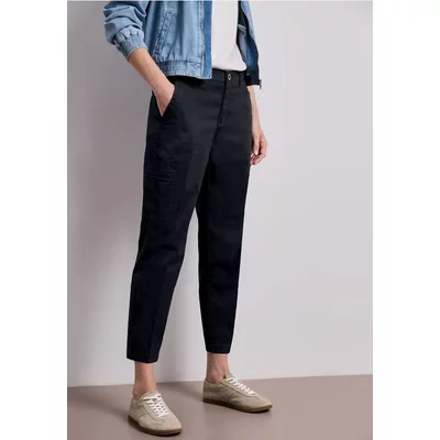 Street One Dames Broek met rechte pijpen in keperstof in Blauw
