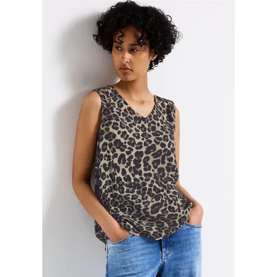 Street One Dames Materiaalmix chiffon shirt in Bruin
