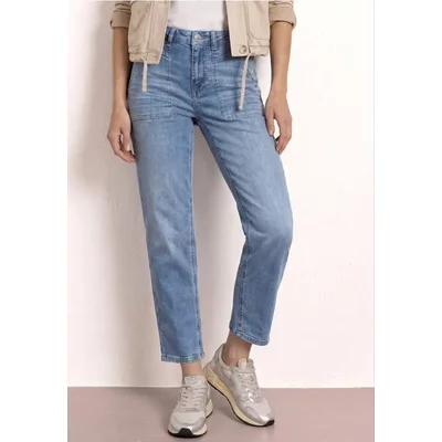 Street One Dames Melange-look paperbag broek in Beige