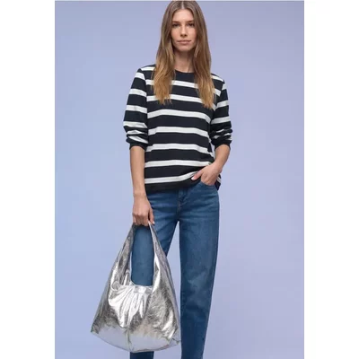 Street One Dames Gestructureerd gemengd shirt in Blauw