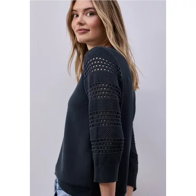 Street One Dames Jersey top met gehaakte details in Blauw