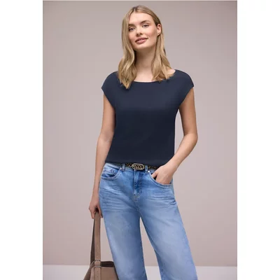Street One Dames Materiaalmix V-hals Shirt in Blauw