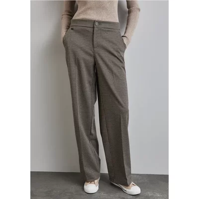 Street One Dames Geruite broek met wijde pijpen in Beige