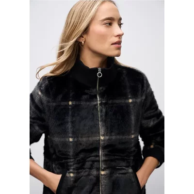 Street One Dames Geruite jas van imitatiebont in Zwart