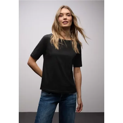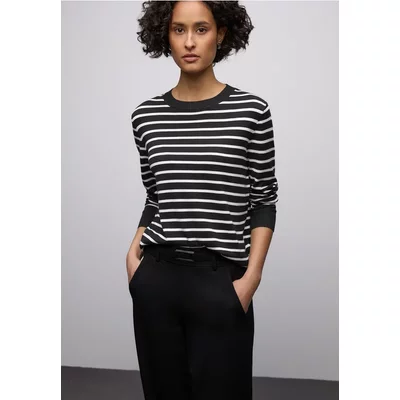 Street One Dames Gestreept shirt met print in Zwart