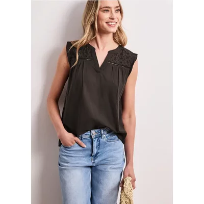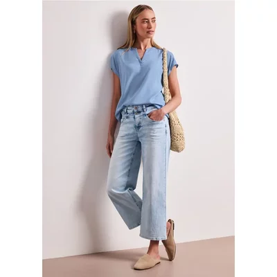 Street One Dames Basic shirt met geribbelde textuur in Bruin