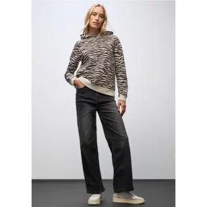 Street One Dames Hoodie met patroon in Bruin