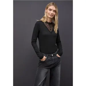 Street One Dames Glitter gebreid shirt in Zwart