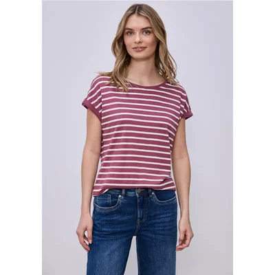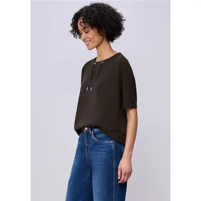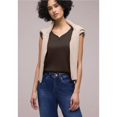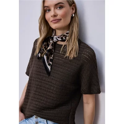 Street One Dames Sweat met jacquard in kleurblok in Bruin