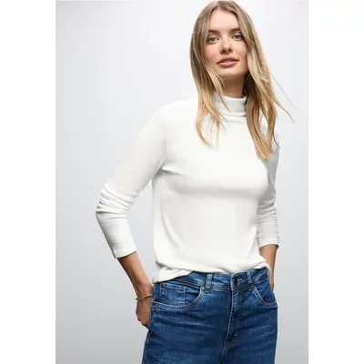 Street One Dames Basic shirt met coltrui in Wit
