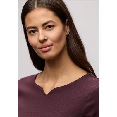 Street One Dames Basic shirt met geribbelde textuur in Rood