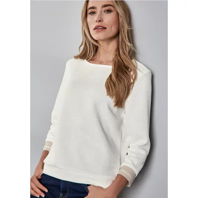 Street One Dames Shirt met gestreepte manchetten in Wit