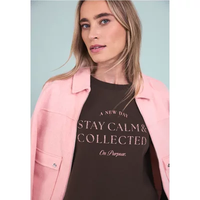 Street One Dames Sweatshirt met artwork in Bruin