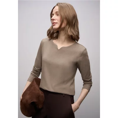 Street One Dames Basic shirt met geribbelde textuur in Bruin