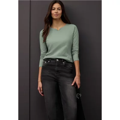 Street One Dames Tricot top met gespleten hals in Turkoois