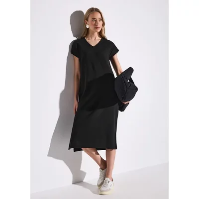 Street One Dames Jurk met geribbelde structuur in Zwart