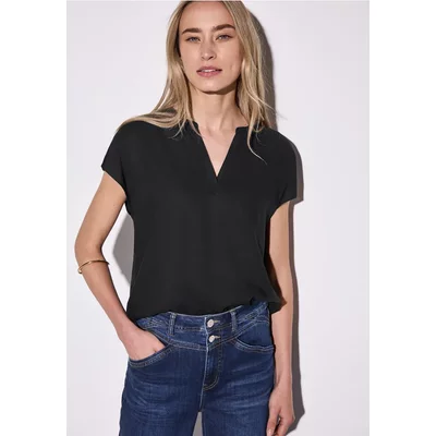 Street One Dames Blouse in effen kleur in Zwart
