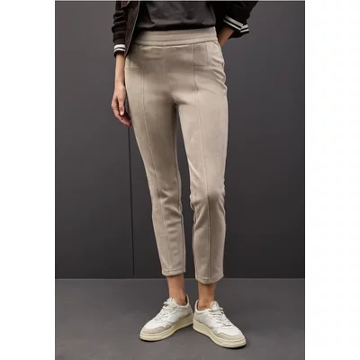 Street One Dames Geruite broek met wijde pijpen in Beige