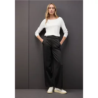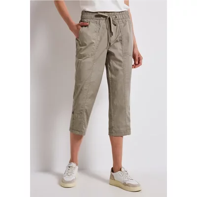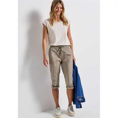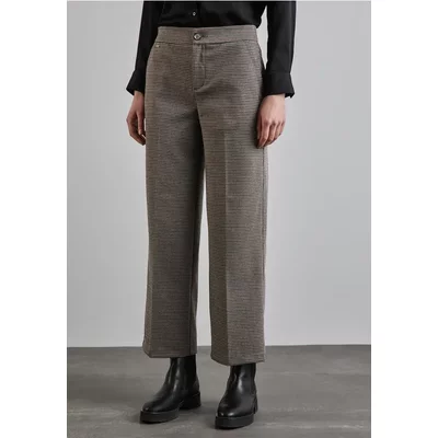 Street One Dames Geruite broek met wijde pijpen in Beige