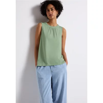 Street One Dames Jersey top met rimpels in Groen