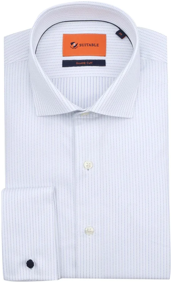Suitable Overhemd Twill Dubbel Manchet Print Wit