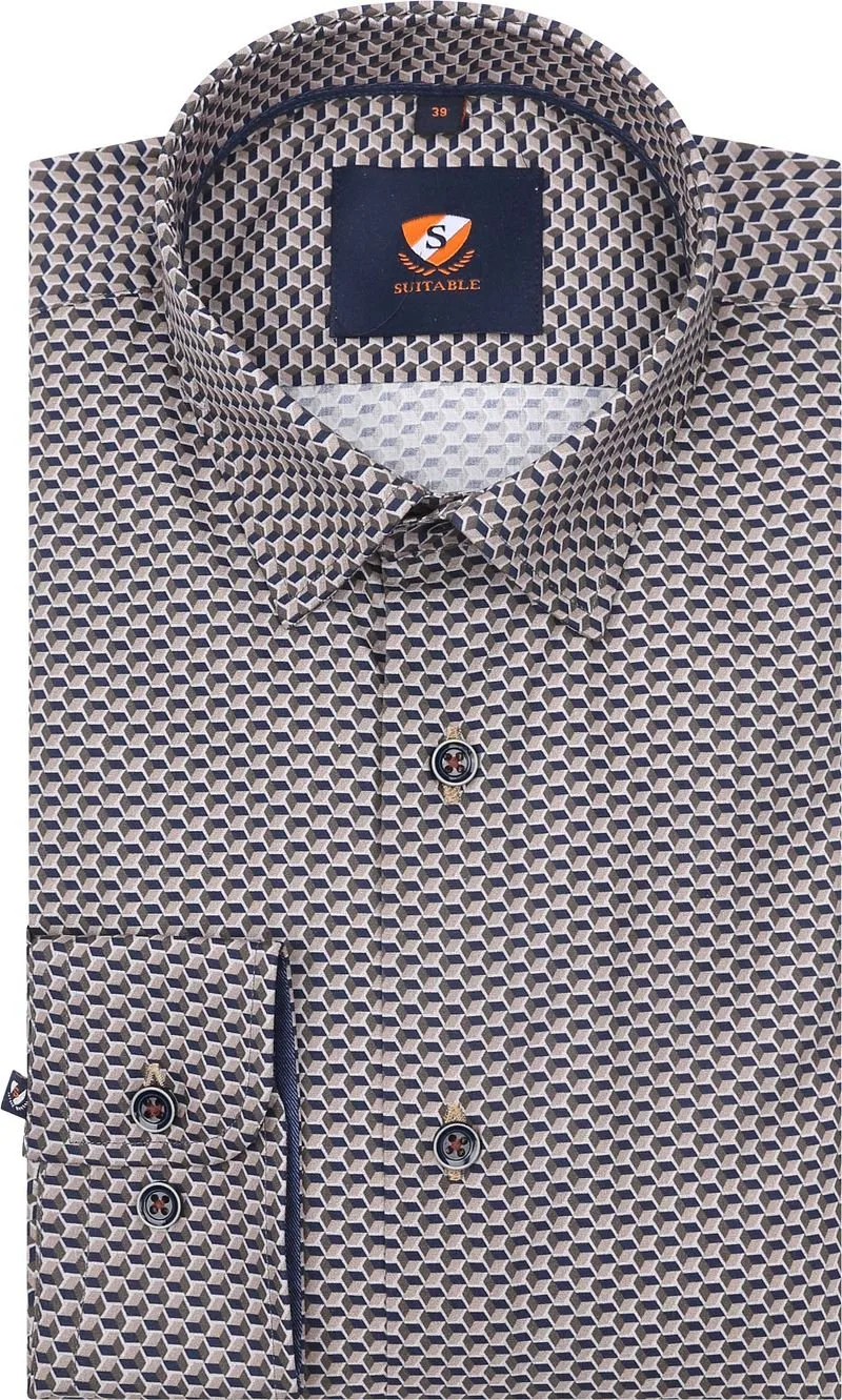 Suitable Overhemd Print Bruin 267-12