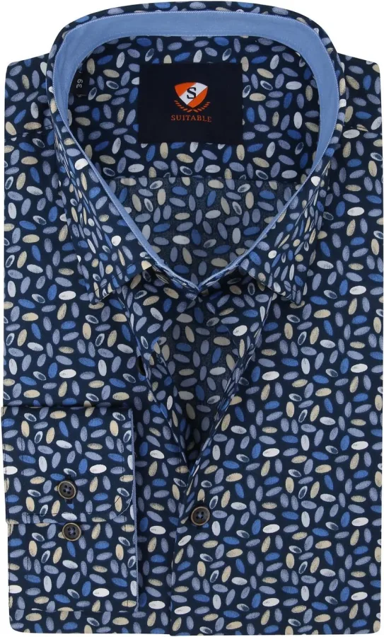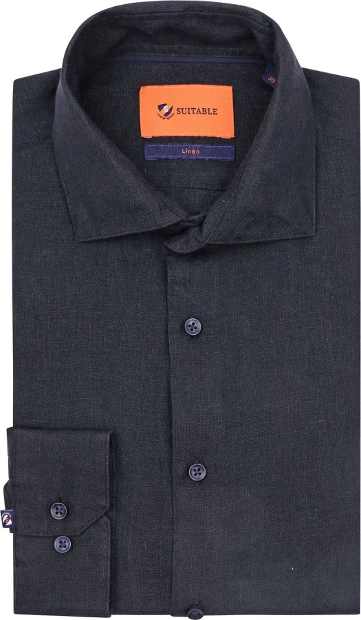 Suitable Korte Mouwen Overhemd Cotton Slub Navy
