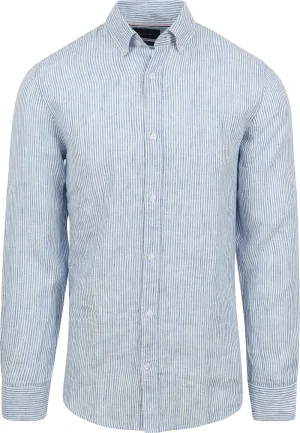Suitable Korte Mouwen Overhemd Cotton Slub Streep Blauw