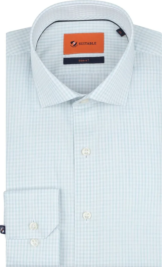 Suitable Overhemd Extra Lange Mouwen Twill Ruit Lichtgroen