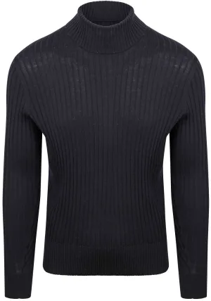 Suitable Longsleeve Poloshirt Flat Knit Navy