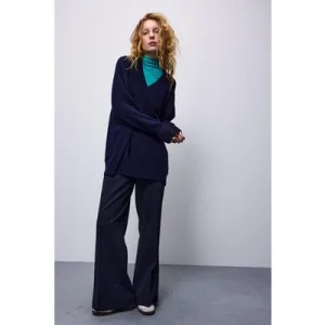 Summum Woman Trousers Punto Vintage Stripe Midnight Blue